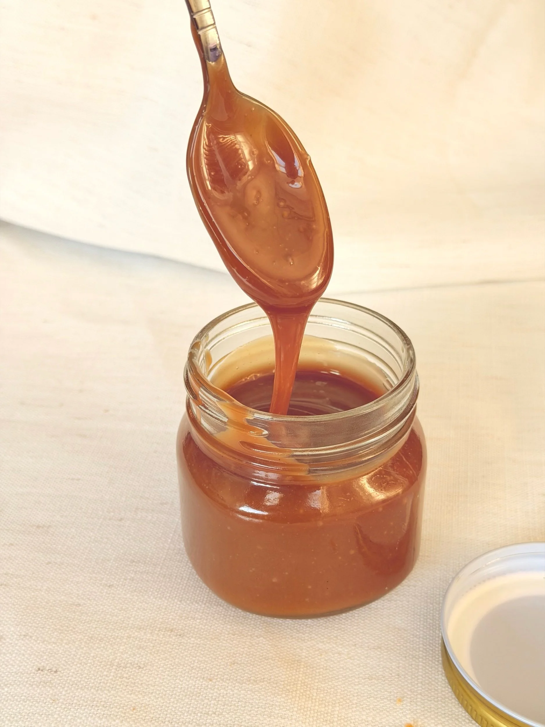 Velvety salted caramel is made even better by adding tangy cider syrup - made with local cider from the Dexter Cider Mill. Eat it by the spoonful or add it to your fave pie!